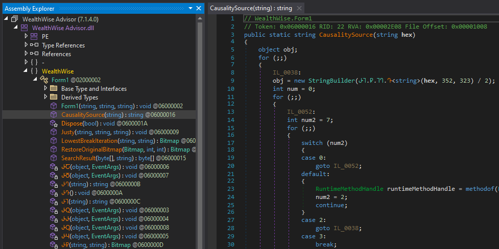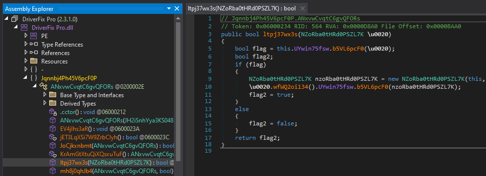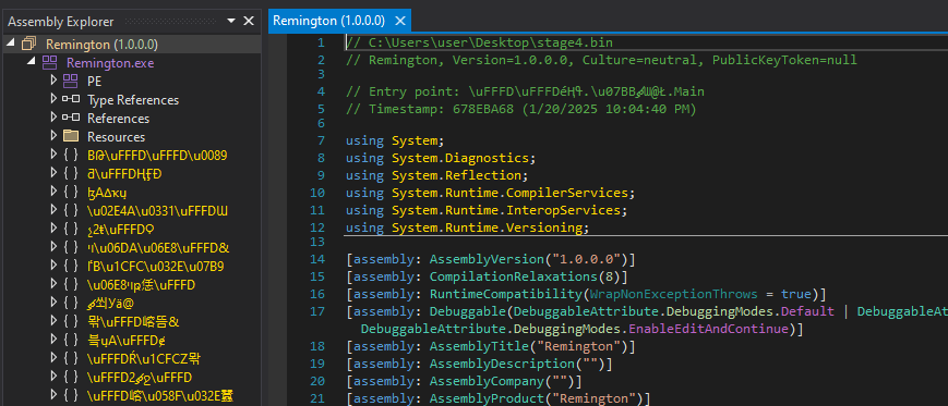 Loading this second stage into a new instance of dnSpy shows that it is heavily obfuscated.