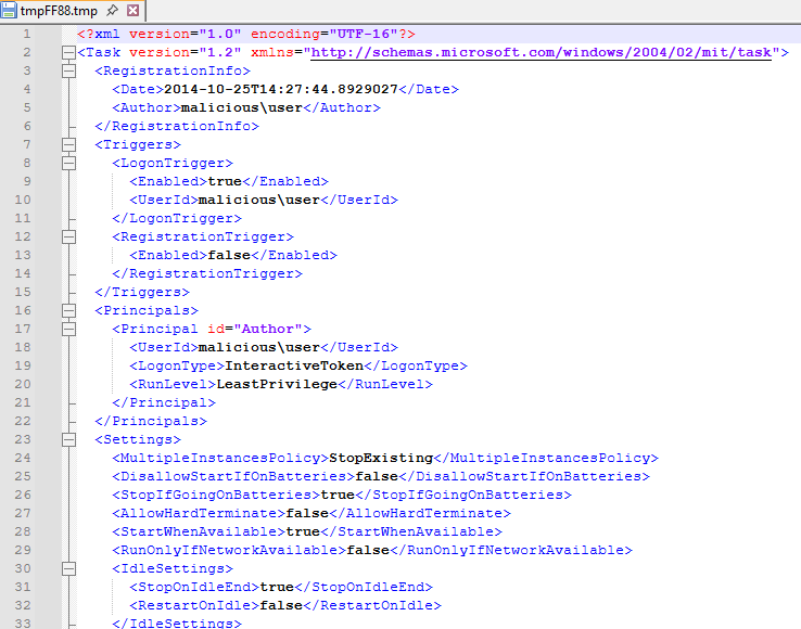 Additionally, the task is configured to trigger when the user who initially ran the malware logs on.